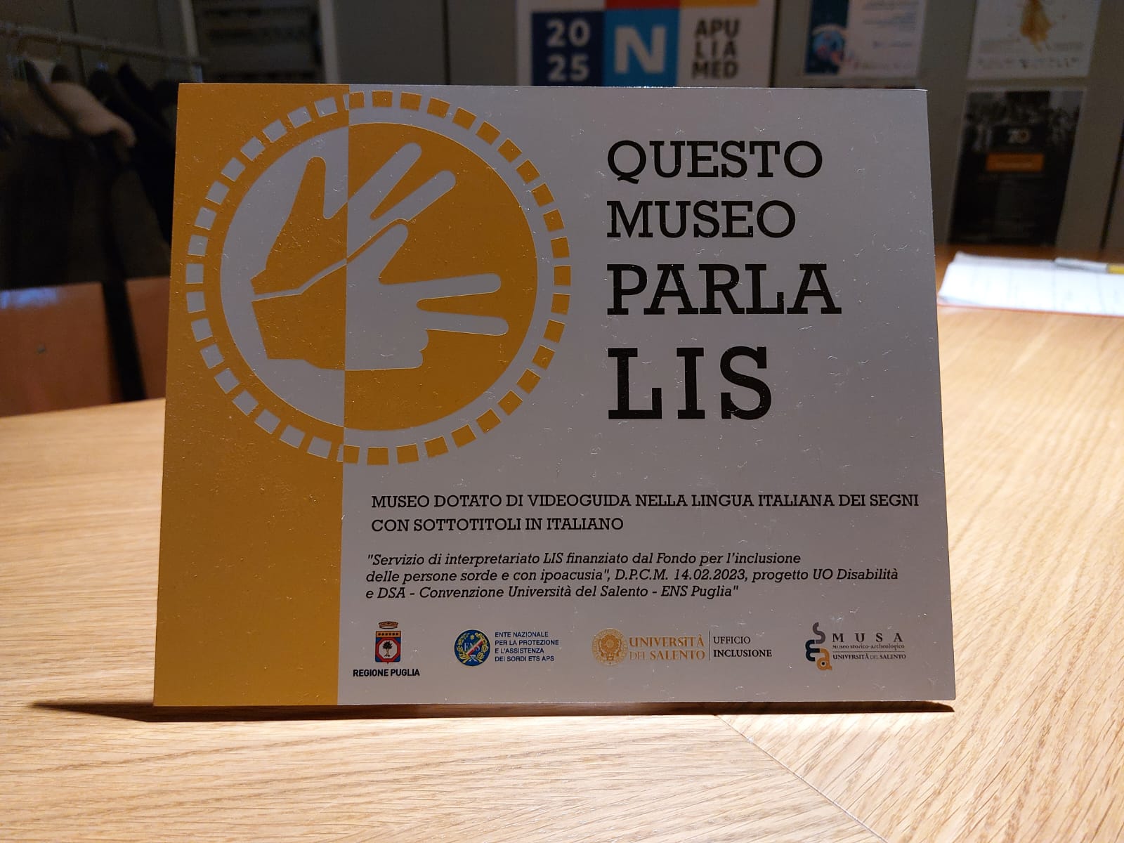 Il 16 dicembre 2025, presso il MUSA – Museo Storico Archeologico dell’Università del Salento, si è tenuta la presentazione ufficiale della Videoguida in LIS (Lingua dei Segni Italiana), seguita da una visita guidata condotta dalla Direttrice del Museo, Grazia Maria Signore.